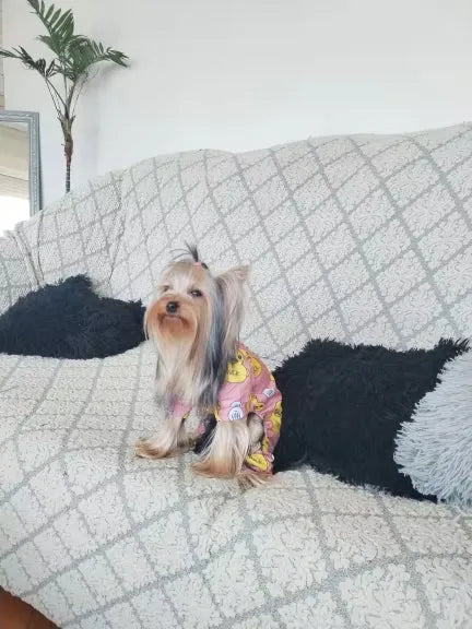 "OMG, love these pet onesies! 😍 My little furball just looks adorable in them. They're super comfy and the fit is perfect. The fabric is very breathable, so my pet stays cool even when it's warm outside. Definitely buying more as gifts! 🐾❤️"